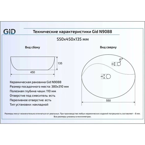 Раковина 37x37 см Ceramica Nova Element CN6020