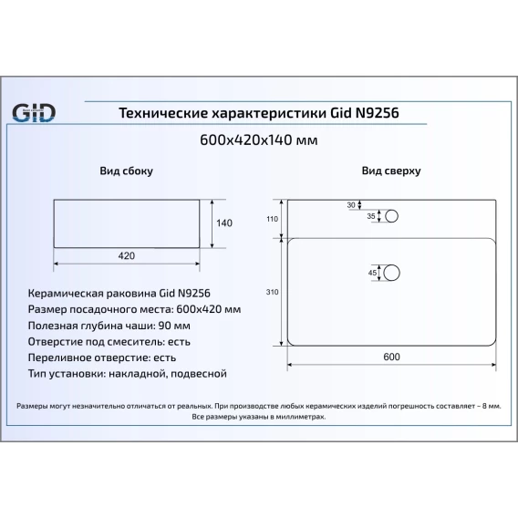 Раковина 60x42 см GID Simple N N9256