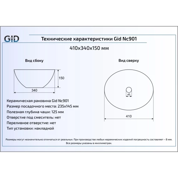 Раковина 41x34 см GID Color Edition Nc901