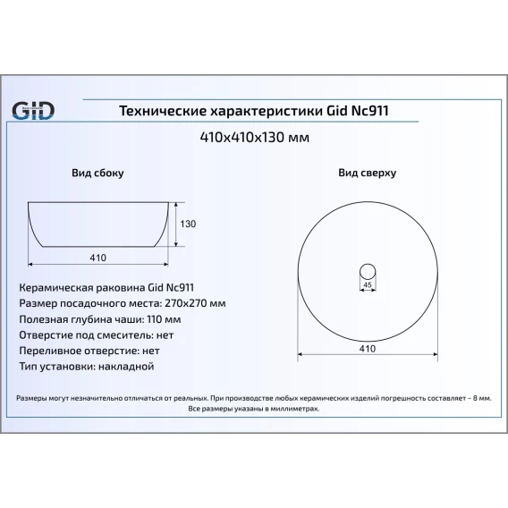 Раковина 41x41 см GID Color Edition Nc911