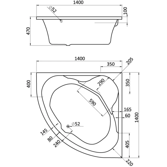 Акриловая ванна 140x140 см Santek Карибы 1.WH11.1.982