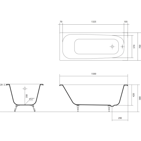Ванна чугунная Aquatek Сигма AQ8850F-00 150x70 см, белый