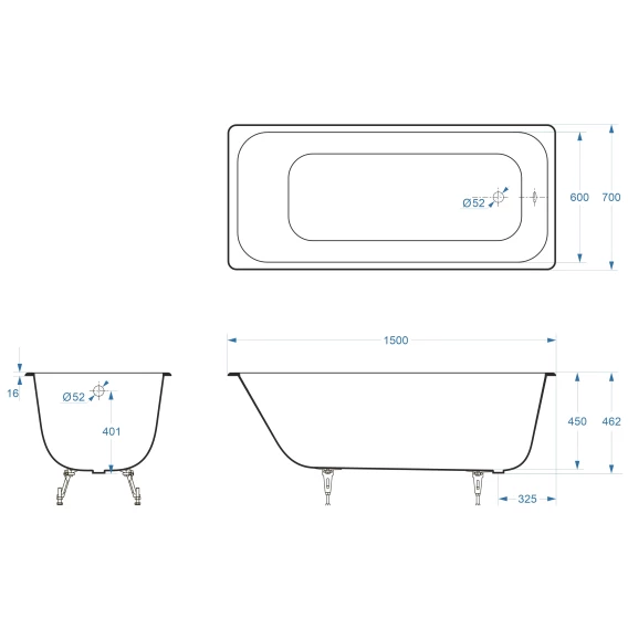 Ванна чугунная Delice Aurora DLR230603-AS 150x70 см, с антискользящим покрытием, белый