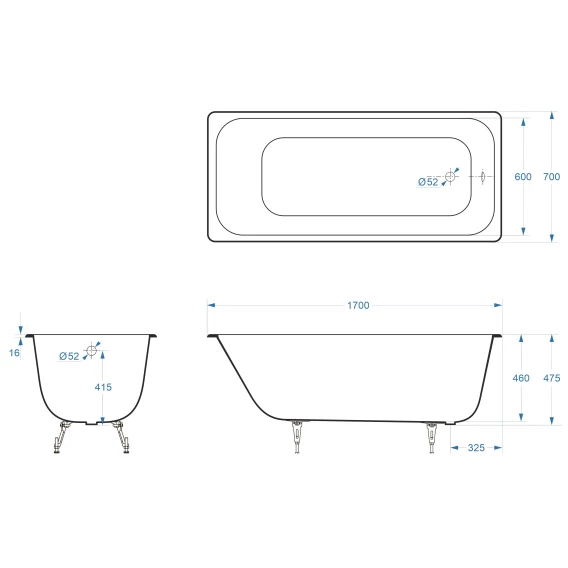 Ванна чугунная Delice Aurora DLR230605-AS 170x70 см, с антискользящим покрытием, белый