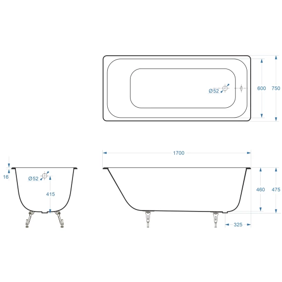 Ванна чугунная Delice Aurora DLR230606 170x75 см, белый