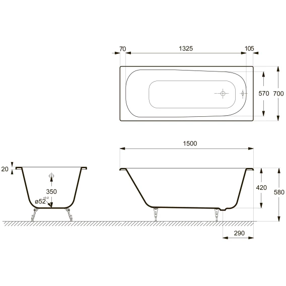 Ванна чугунная Delice Continental DLR230612 150x70 см, белый