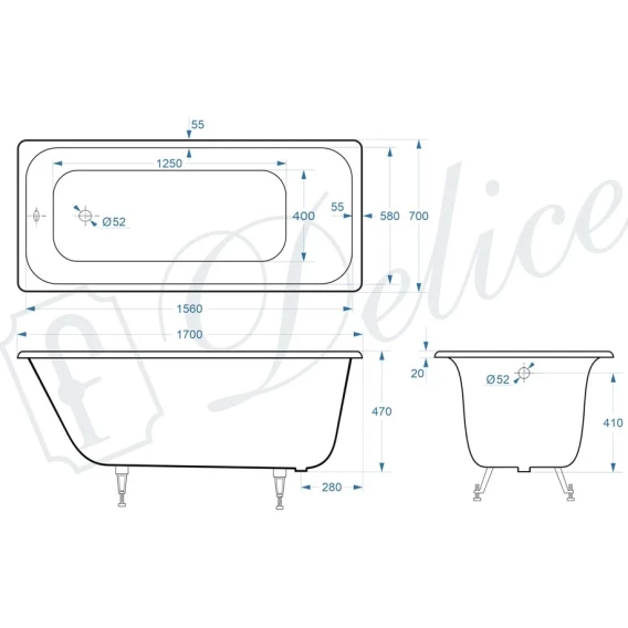 Ванна чугунная Delice Continental Plus DLR230634 170x70 см, белый