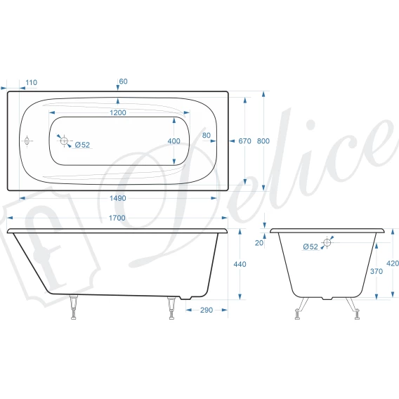 Ванна чугунная Delice Flex DLR230631 170x80 см, белый