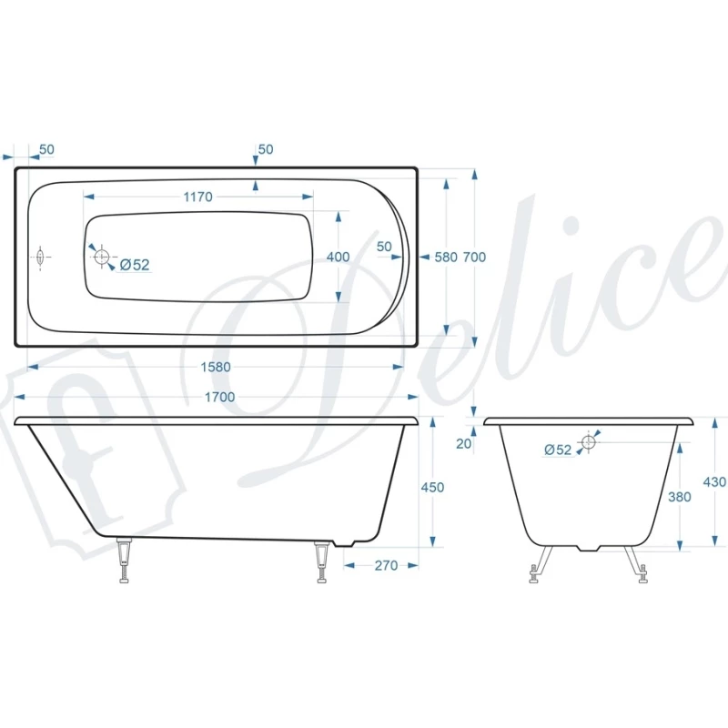 Ванна чугунная Delice Fusion DLR230647 170x70 см, белый