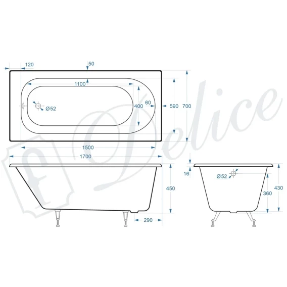 Ванна чугунная Delice Grace DLR230643 170x70 см, белый