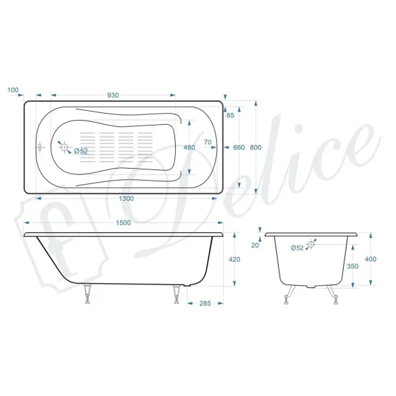 Ванна чугунная Delice Haiti Luxe DLR230636R 150x80 см, с отверстиями под ручки, белый