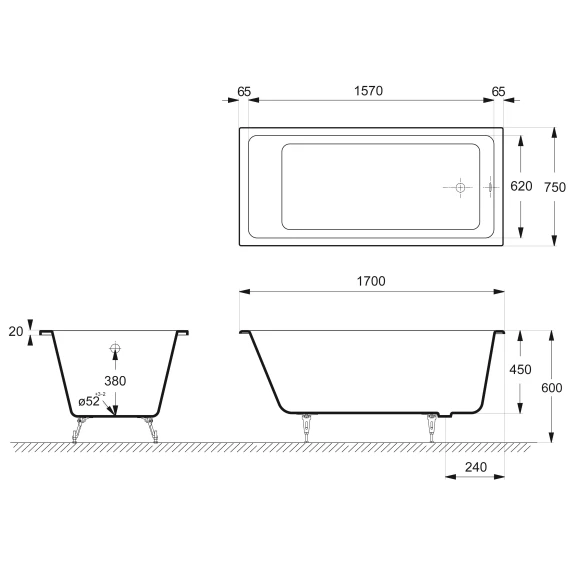Ванна чугунная Delice Level DLR230602-AS 170x75 см, с антискользящим покрытием, белый