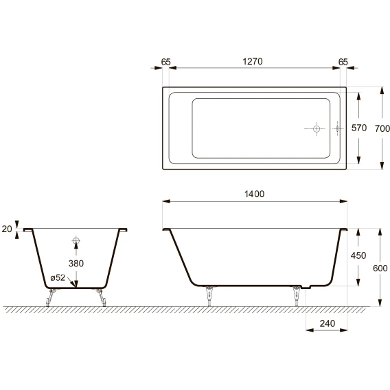 Ванна чугунная Delice Level DLR230618R 140x70 см, с отверстиями под ручки, белый