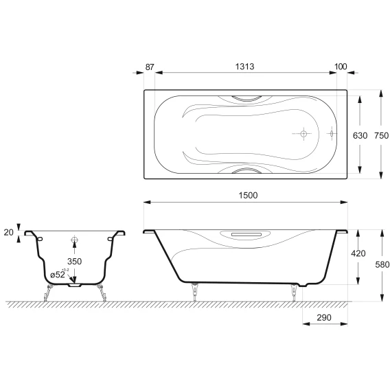 Ванна чугунная Delice Malibu DLR230607R 150x75 см, с отверстиями под ручки, белый