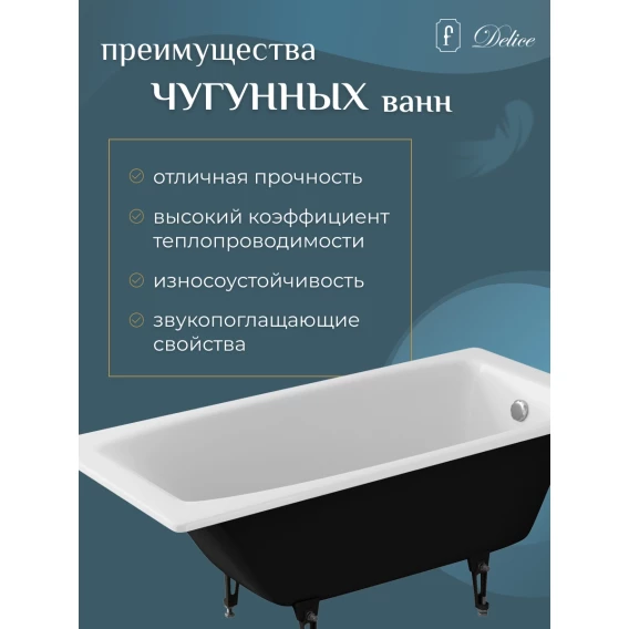 Ванна чугунная Delice Repos DLR220507R 150x70 см, с ручками, белый