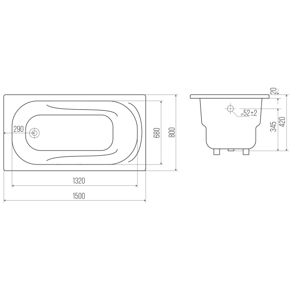 Ванна чугунная Goldman Nova NV15080 150x80 см, белый