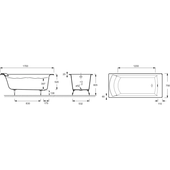 Ванна чугунная Jacob Delafon Biove E2930-00 170x75 см, с антискользящим покрытием, белый