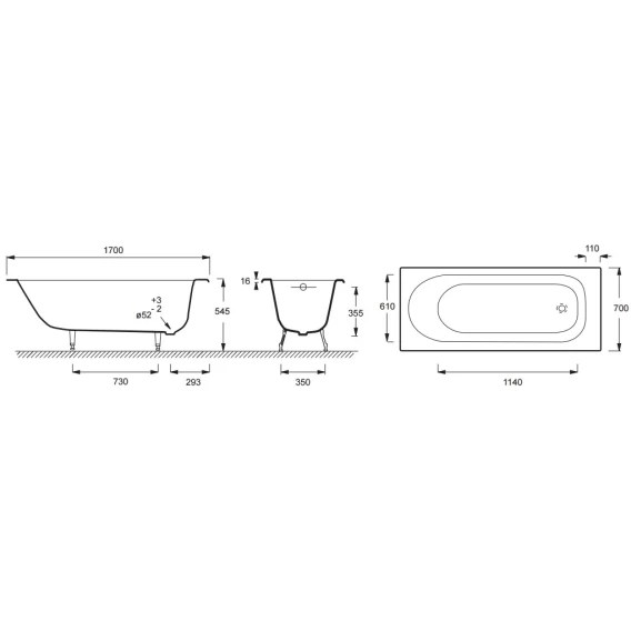 Ванна чугунная Jacob Delafon Soissons E2921-00 170x70 см, белый