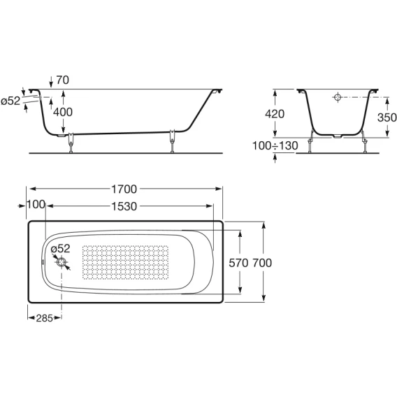 Ванна чугунная Roca Continental 21291100R 170x70 см, с антискользящим покрытием, белый