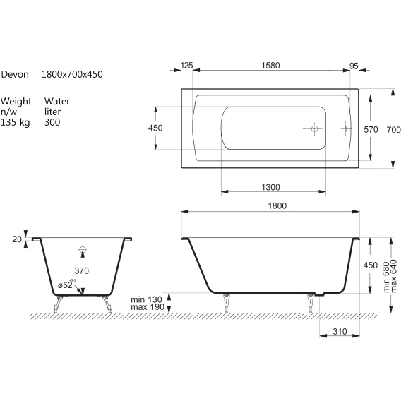 Ванна чугунная Vinsent Veron Kingston VKN1808050H/VH0012BL 180x80 см, с ручками, белый
