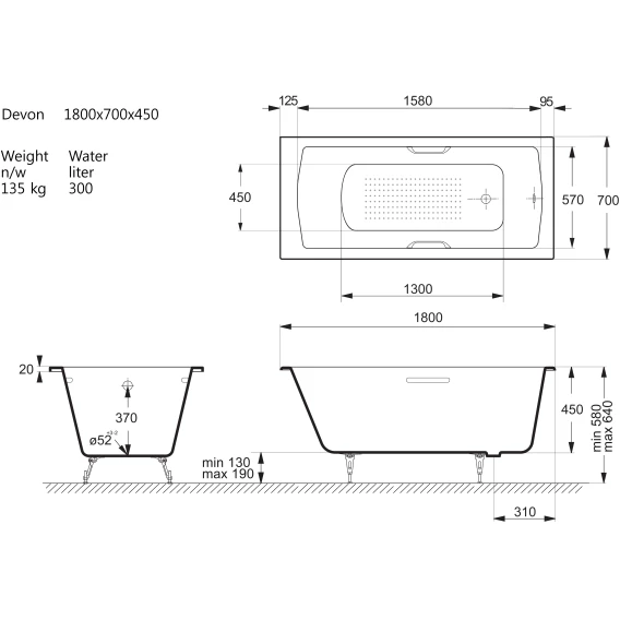 Ванна чугунная Vinsent Veron Kingston VKN1808050H/VH0012GD 180x80 см, с ручками, белый