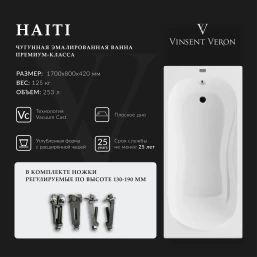 Ванна чугунная Vinsent Veron Haiti VHT1708042 170x80 см, белый