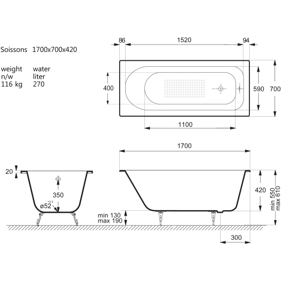 Сифон для кухонной мойки Omoikiri WK-1-LG 4956824 3 1/2"-40x40/50, светлое золото
