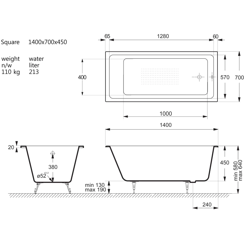 Ванна чугунная Vinsent Veron Concept VCO1657042 165x70 см, белый