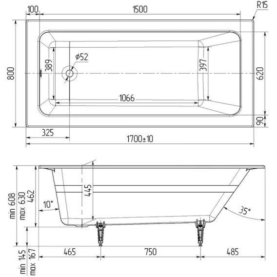 Ванна чугунная Wotte Line 1700х800 170х80 см, белый