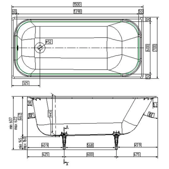 Ванна чугунная Wotte Start 1500x700 150x70 см, белый