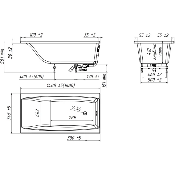 Ванна из литьевого мрамора 148x74,5 см Belux Импульс 4810924188526