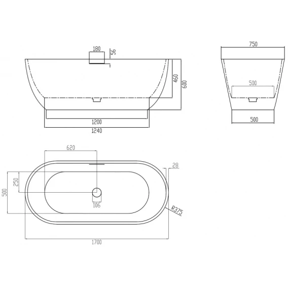 Чаша напольного безободкового унитаза Grohe Bau Ceramic 39349000