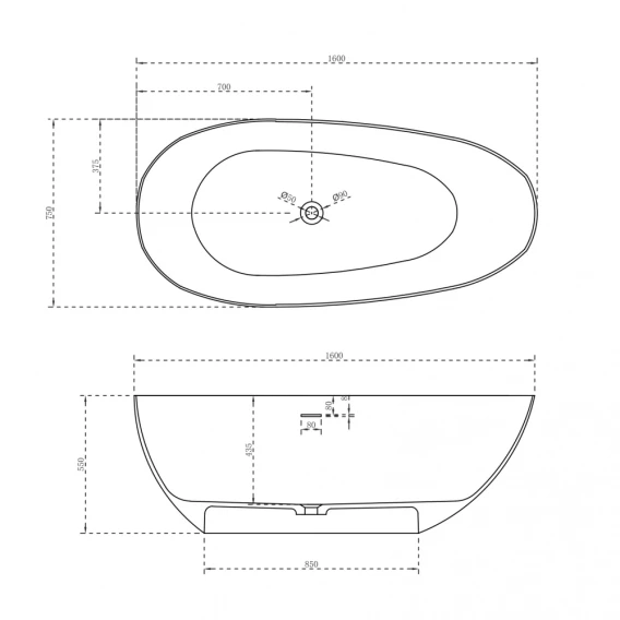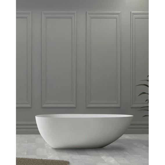 Ванна из литьевого мрамора Abber Stein AS9615-1.6 163x85 см, отдельностоящая, белый матовый