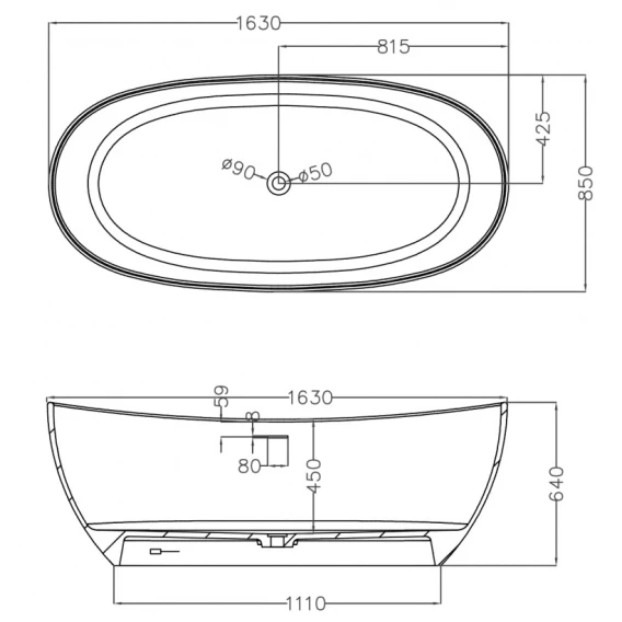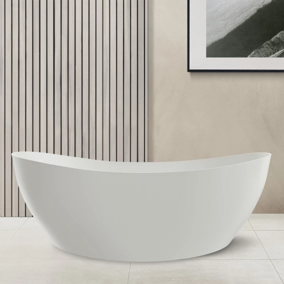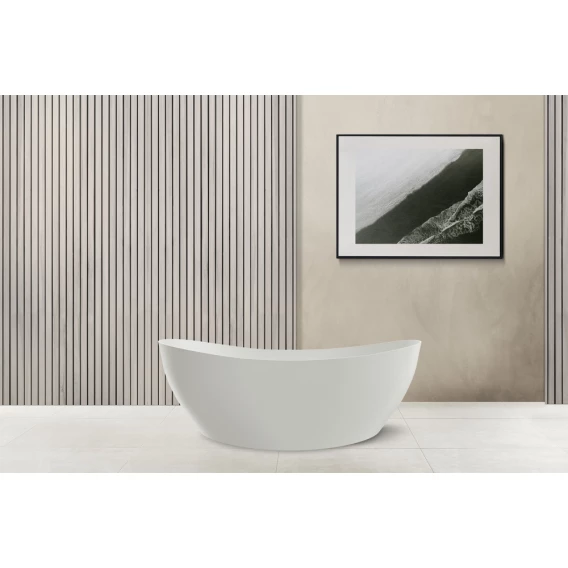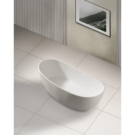 Ванна из литьевого мрамора Abber Stein AS9615-1.6 163x85 см, отдельностоящая, белый матовый