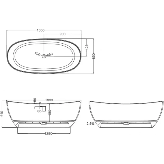 Ванна из литьевого мрамора Abber Stein AS9615-1.8 180x85 см, отдельностоящая, белый матовый