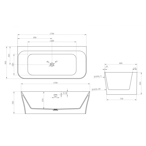 Ванна из литьевого мрамора Abber Stein AS9616 170x80 см, белый матовый