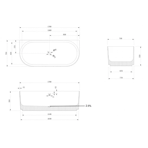 Ванна из литьевого мрамора Abber Stein AS9630 170x75 см, белый матовый