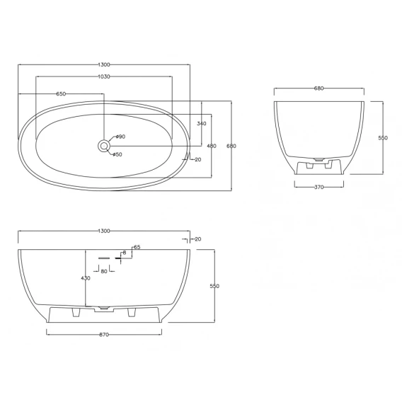 Ванна из литьевого мрамора Abber Stein AS9641-1.3 130x68 см, отдельностоящая, белый матовый
