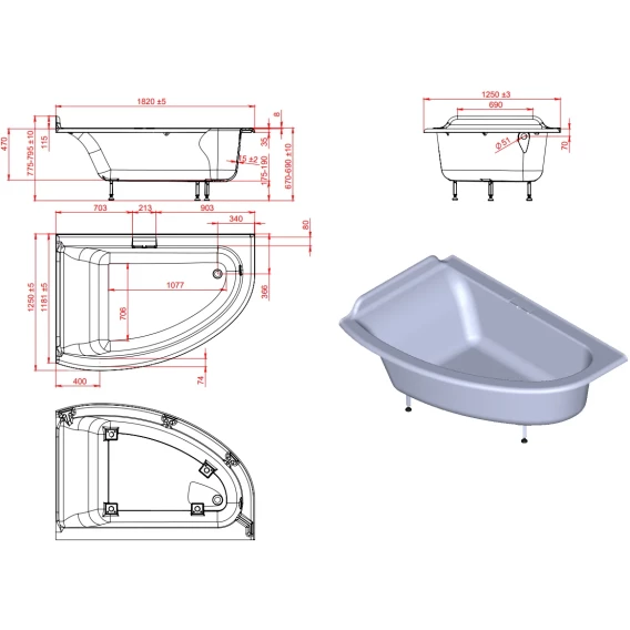 Длина 182 см