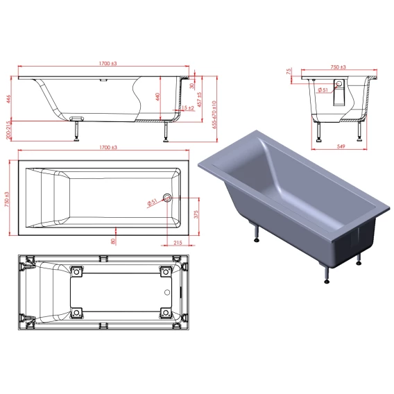 На ванны, установленные без установочных ножек, гарантия изготовителя не распространяется.