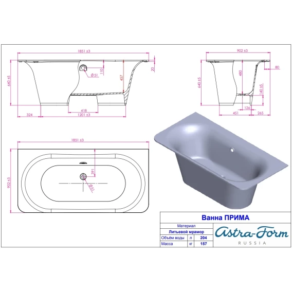 Ванна из литьевого мрамора Astra-Form Лира 01010020 170x75 см, белый