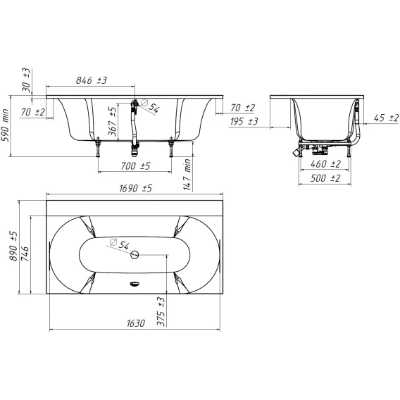 Ванна из литьевого мрамора Belux Омега 2 4810924219442 169x89 см, белый