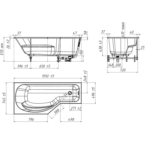 Ванна из литьевого мрамора Belux Вена 4810924211675 159,2x74,5 см L, белый