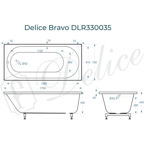 Delice Bravo 170х75 выпускается в 2-х модификациях: