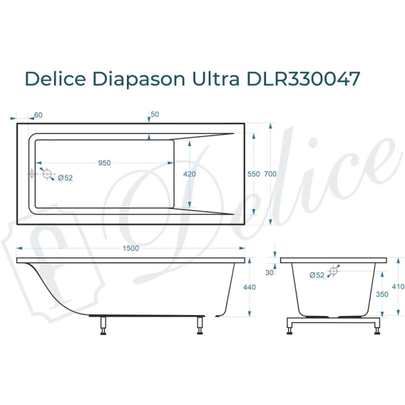 Delice Diapason Ultra 150х70 с глянцевым покрытием выпускается в 2-х модификациях: