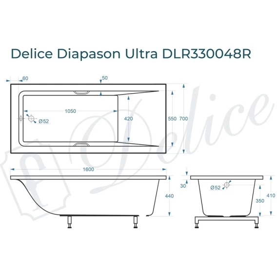 Delice Diapason Ultra 160х70 с глянцевым покрытием выпускается в 2-х модификациях: