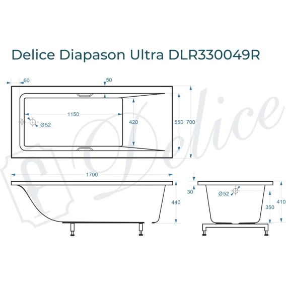 Delice Diapason Ultra 170х70 с глянцевым покрытием выпускается в 2-х модификациях: