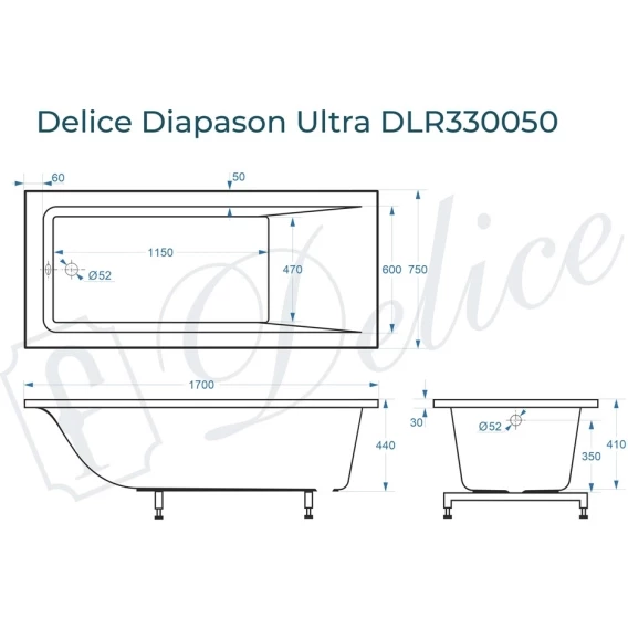 Delice Diapason Ultra 170х75 с глянцевым покрытием выпускается в 2-х модификациях: