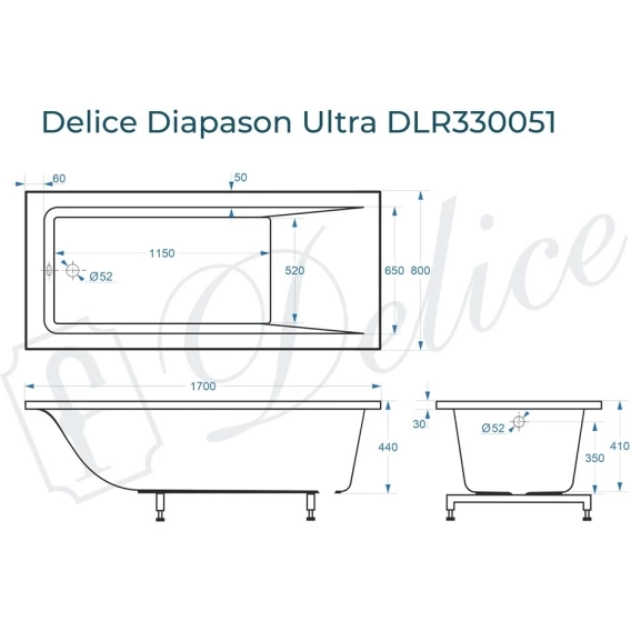 Delice Diapason Ultra 170х80 с глянцевым покрытием выпускается в 2-х модификациях: