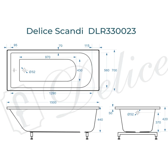 Размерный ряд ванны из литьевого мрамора Delice Scandi: 150х70, 160х70, 165х70, 170х70, 170х75, 170х80, 175х70, 180х70, 180х75, 180х80 и 190х80 см.